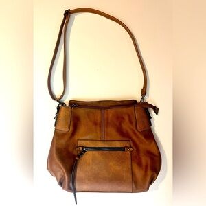 Realer Brown Faux Leather Bag Shoulder or Crossbody Purse Multiple Pockets