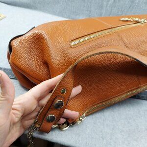 Realer Brown Pebbled Faux Leather Hobo Shoulder Bag With Gold Accents