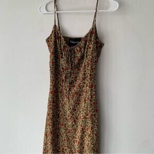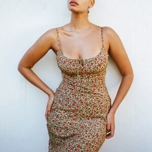 Realisation Alba Silk Floral Spaghetti Strap Midi Slip Dress Dahlia Tan