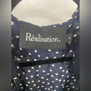 Realisation Alexandra Star Silk Warp Mini Dress Navy Size Small.