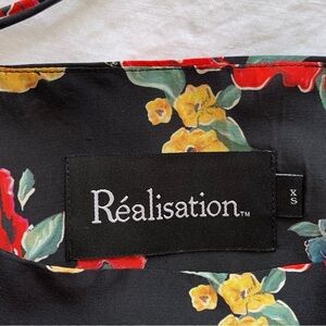 Realisation Christy Silk Spaghetti Strap Mini Dress Black 90s Floral Print