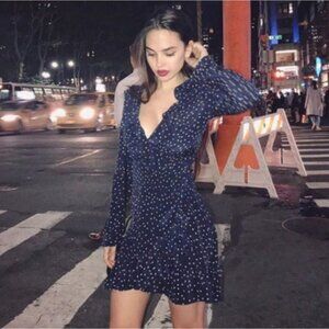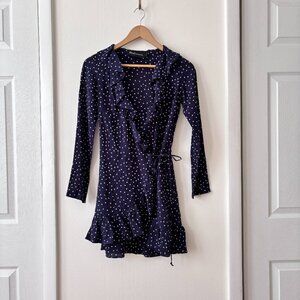 EUC; Realisation Par Alexandra Ruffled Silk Wrap Mini Dress Navy Star Print