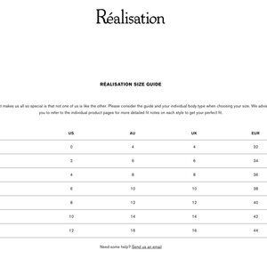 @talipena hi! I just posted the size guide from the Realisation Par website, hope that helps! Were you looking for any specific measurements?