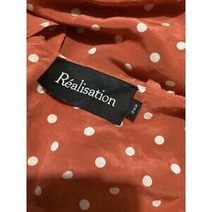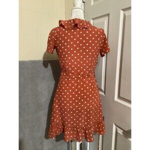 Realisation Par Dress Womens XXS Rust White Polka Dot Silk Wrap Ruffle Mini