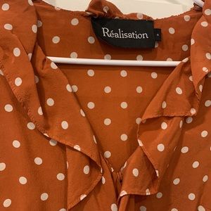 Nearly perfect condition. Work a few times. Orange polka dot silk fabric