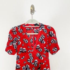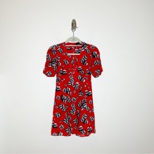 Realisation Par Ozzie Silk Floral Print Short Dress Pansy Red