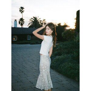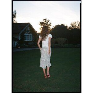 Description from retailer: The Carmen – with its fluted hemline and timeless silhouette, this skirt brings to mind the charm of the beloved Naomi, but with a fresh, modern twist. The Carmen sits at mid-calf, flattering the figure with its subtle flair that adds movement making you feel like you could put a little cha cha into every step. Whether you're sipping cocktails under the afternoon sun or dancing the night away under city lights, this skirt has you covered. Pair it with a fitted knit for a polished winter look or a crisp white tee for effortless summer chic. The Carmen is your new go-to for any occasion – flirty, feminine, and ready for anything