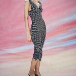Beautiful simple midi silk slip dress in a black and white print. It's thin but barely see through (if you wear really dark underwear you can see a bit but I don't even wear nipple stickies for this). It has a nice tie that lets you tighten in the bodice/waist area and gives a really beautiful shape. Very flattering and comfortable for the summer, I just don't reach for it as often as I used to and would love for it to go to a new home. I'm 5'9 and it hits me about the same as the model in the cover photo. Worn a few times but in great condition.