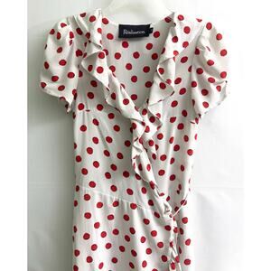 Realisation Par Valentina Red Polka Dot Mini Silk Wrap Dress in Cherry Size XS