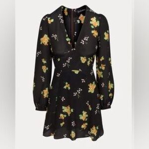 Realisation Par the Kate mini black floral silk Dress long sleeve L