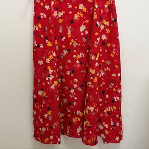 Realisation Silk Wrap Midi Floral Dress in Rouge Fleur Red Size S