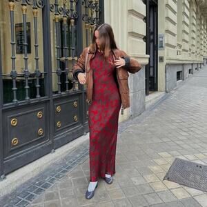 Realisation Tatjana Silk Boatneck Bias Slip Midi Maxi Dress Red Rouge Leopard