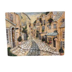 Realistic 3D Resin Wall Hanging, Cobblestone Street Village, 12" x 9.5"
