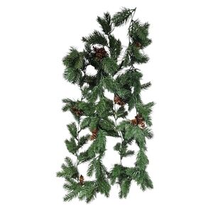 Features soft and flexible real touch plastic pine needle garland, realistic effect artificial garland, adorned with pine cones, approximately 6.5 foot long.