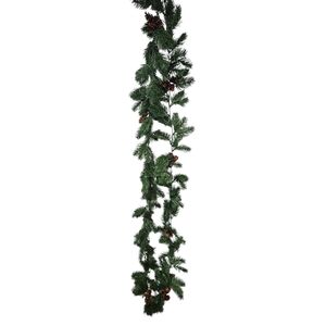 Realistic Real Touch Plastic Pine Needle Garland with Pine Cones 6.5 Foot