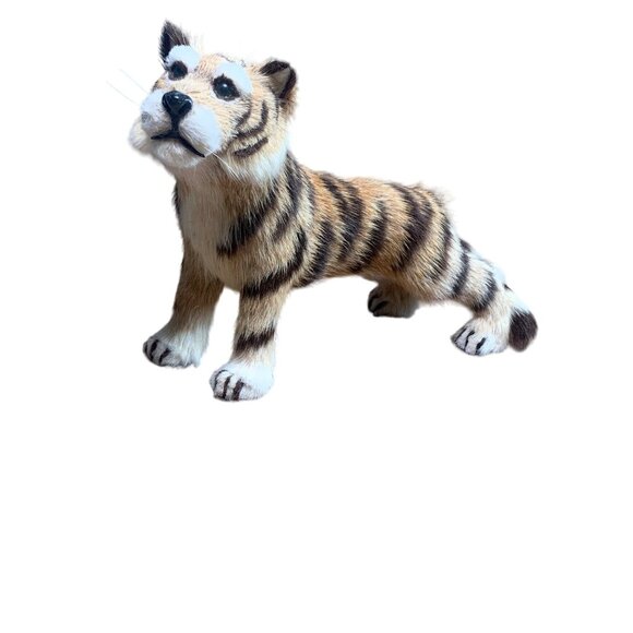 Realistic Tiger Figurine - Faux Fur & Handcrafted - 8" Lifelike Wild Cat Decor