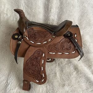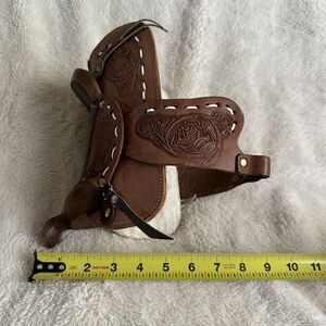 Realistic Tooled Miniature Small Leather Western Saddle 8” Long Doll Accessory