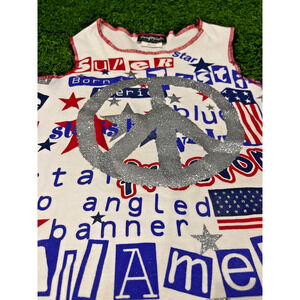 Realitee Y2K USA Patriotic Peace Sign Tank Top Glitter Stars Stripes Made USA M