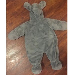 This snowsuit is reeaally soft and warm! Great condition! It has cute little ears!π