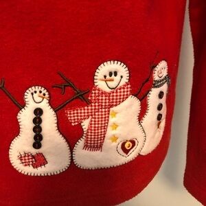 This vintage Baxter & Wells Ugly Christmas Sweater/Cardigan features ugly snowmen with stitched buttons. Be the hit at your holiday parties with this gem. It is 100% polyester fleece, completely sanitized and from a smoke and pet free home. Measurements are approximate and to the best of my ability.