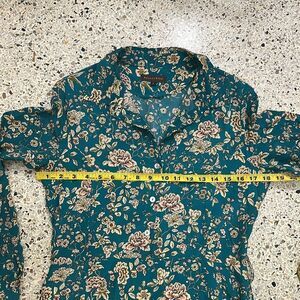 EUC Really Wild size 8 green turquoise blue floral midi dress side zip 100% silk note: belt not included and fabric belt is not available