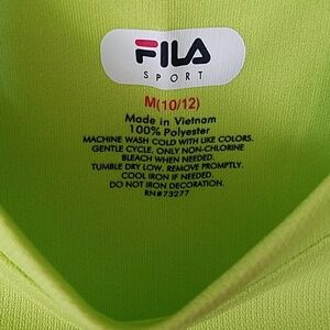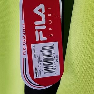 Brand new, NWT Medium Fila sports shirt, long sleeve with slits at bottom for thumbs. Size 10-12. Hello, black. 100% polyester. Machine wash.
