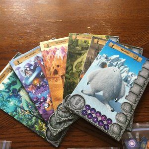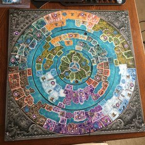 Includes: Game board, 6 game characters, 6 character cards, 6 special ability discs, 6 scoring markers, 6 turn markers, 110 cards, 2 dice, 60 fort discs, 6 houses, 36 tower tiles, 50 magic point discs, 6 bonus tiles, 6 victory discs, storybook, and rules