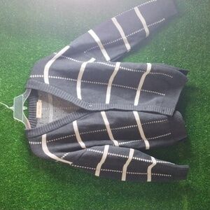 realtakai men's cardigan gray and white size large pre-owned smoke free