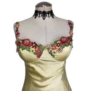 Realtix Coquette Floral Embroidery Shiny Yellow Full Length Gown