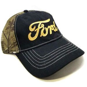 Realtree APG Black Trucker Hat Cap FORD in Gold Color & Camo Mesh NOS NEW (T14)