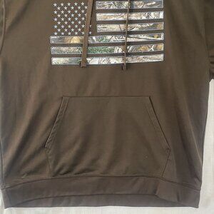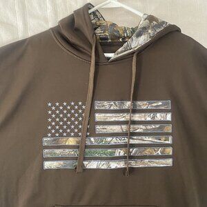 Realtree Buckhorn River Hoodie Mens XXL Brown Fleece Camo Flag Patriotic