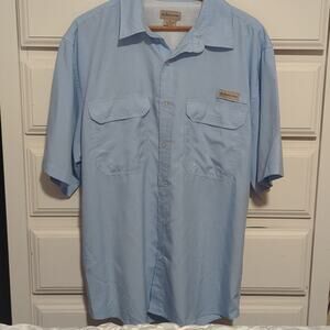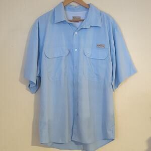 Realtree Button Down Short Sleeve Men's Light Blue Camp Fishing Shirt 50+SPF XL