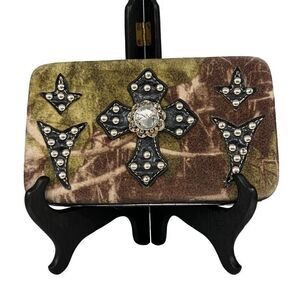 Realtree Camo Bling Wallet 7.5” X 4.5” Multicolor Studded Western Cross Billfold