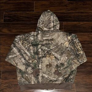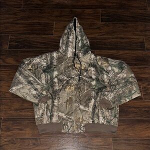 Stylish jacket with a camouflage pattern. Perfect for outdoor adventures. Gently worn as my husband only took it fishing a few times