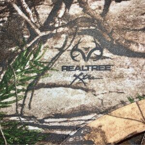 Realtree t-shirt featuring a detailed camouflage pattern and the University of Kansas Jayhawks Logo. Used but excellent condition, no flaws.