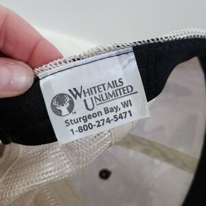 NWT Realtree Edge Whitetails Unlimited Camo White Mesh Trucker Hat Cap. Officially licensed product. Olive green, tan, brown & white camo with leaves & branches, brown under brim. Curved brim, 6 panels, ventilation holes around crown, button top, white deer logo on front panel, adjustable velcro closure, smooth polyester cotton blend. One size fits all. Brand new with tags!