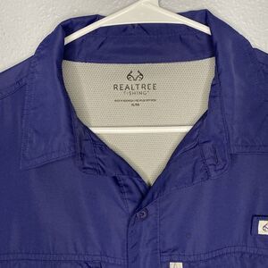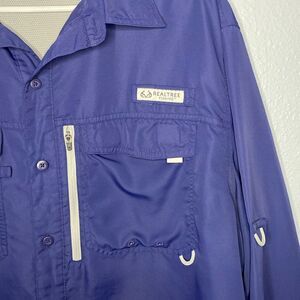 Realtree Fishing Button Up Utility Navy Purple Long Sleeve Vented Shirt Size XL