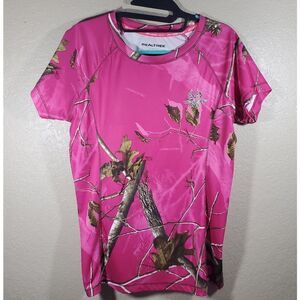 Realtree Hot Pink Woods Forest Camo Outdoor DryTech Active Crew Neck Tee Shirt