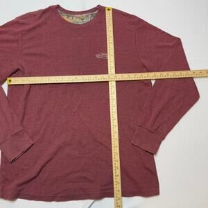 Realtree men’s maroon long sleeve thermal with a soft waffle knit texture and camo inner collar. Ideal for layering, workwear, or hunting season. Size XL—measurements shown in final photo.