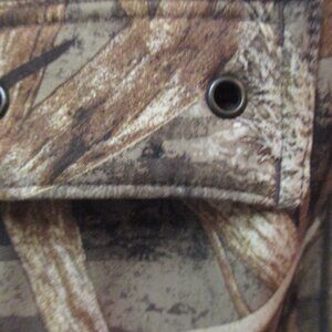 Men's Realtree Max -5 Camouflage jacket. This is a size XL 46 48 in Mens. Perfect for bird or hunting jacket. IMAX-5 embroidered on the front and the back outside neck. There are 2 pockets on the outside with zipper closure. Small vest on the back Cord locks at bottom to cinch in waistline of jacket. Velcro on cuffs to adjust to the profer fit. There is a chest pocket with zipper closure on the left side of jacket. Perfect for your phone..............Machine washabe.