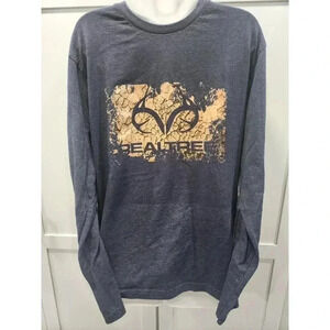 Realtree Men's Long Sleeve Classic Logo T-Shirt Navy Blue And Brown Size Large