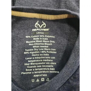 Show off your love for the classic Realtree logo with this navy blue and brown T-shirt. Made from a comfortable blend of polyester and cotton, this shirt features long sleeves and a crew neckline for a versatile look. The shirt is available in size L and is perfect for men who want to add a touch of style to their wardrobe. The shirt's accents include the iconic Realtree logo, making it a must-have for any fan of the brand.