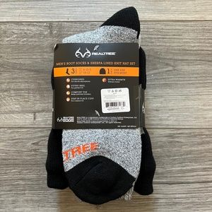 Realtree Mens Sock & Hat Combo Knit Beanie Black And 3 Pair Gray Crew Boot Socks