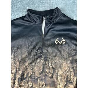 Realtree Mens XL Camo Quarter Zip Pullover Jacket Hunting Fleece Tree Bark *