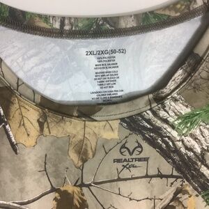 Realtree Oak-moss Camo Short Sleeve Shirt. Size 2XL/2XG (50-52). Great pre-owned condition, one tiny hole at bottom front at shown on picture, which is hardly noticeable.