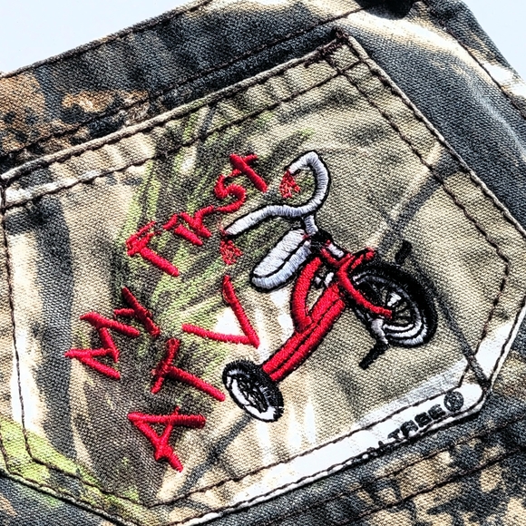 Camo woodland print Embroidered pocket with first ATV print Great for your little outdoorsman. 0046