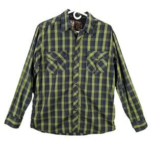 Realtree Shirt Mens Medium Green Checkered Pearl Snap Western Rodeo Country Farm