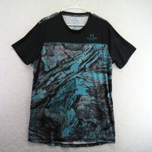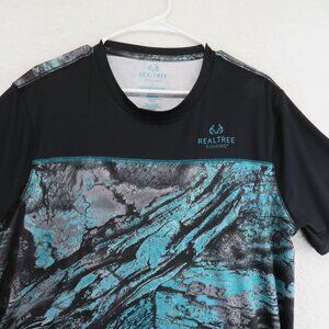 Realtree Shirt Men's Size Large Fishing Black Teal Graphic Short Sleeve