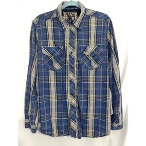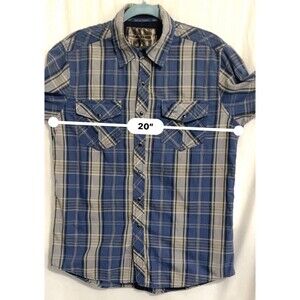 Realtree Western long sleeve shirt with snap buttons in a blue plaid design. Excellent preowned condition. Mens size medium.