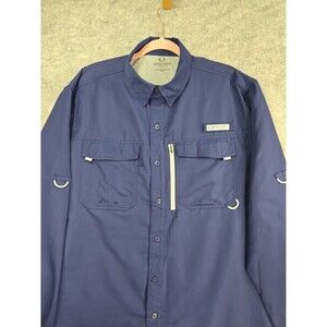 Realtree Vented Fishing Button Front Shirt Long Sleeve Men XL Navy Blue Outdoors